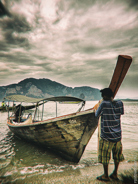 К острову Ко Пинг Кан большие корабли близко не подходят, поэтому доставляли нас на берег большие длиннохвостые лодки с большими и очень громкими моторами.