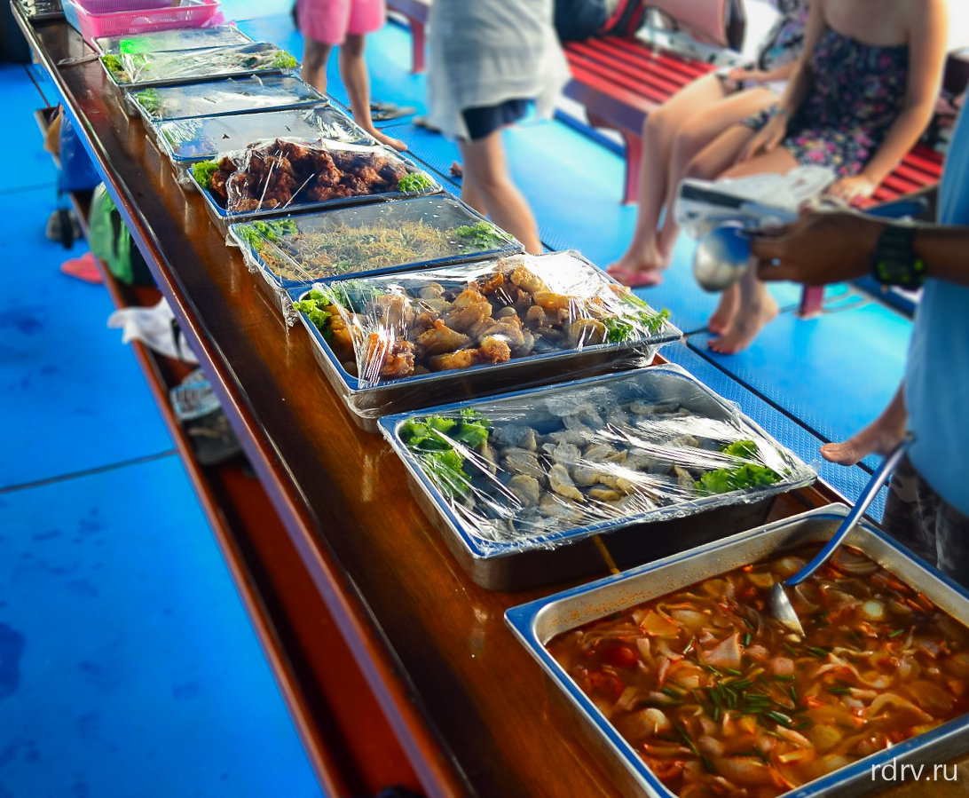 По возвращении на корабль нас ждал обед. Судно пошло тихим ходом к нашей следующей цели, а мы предались трапезе. Шведский стол хоть и был довольно разнообразным, но сильно вкусных блюд как-то не нашлось, это помогло избежать обжираловки.